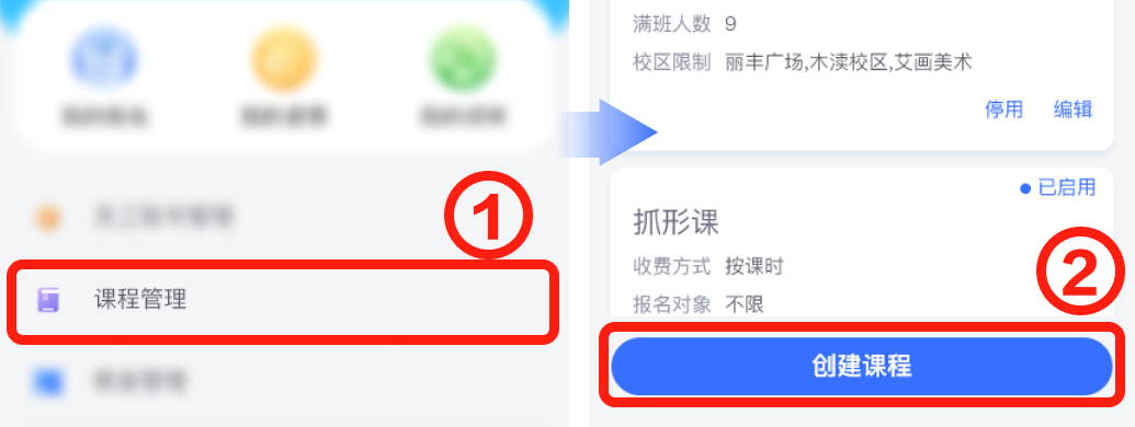 从我的页面-课程管理点击进入,点击创建课程。