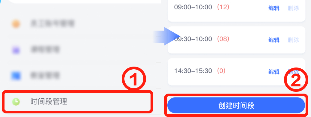 从我的页面-时间段管理点击进入,添加校区上课的时间段。