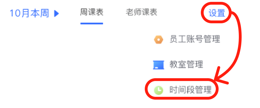 时若临时需要添加时间段,可在排课页面右上角点击设置,时间段管理。