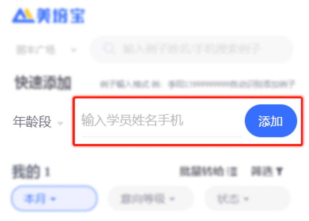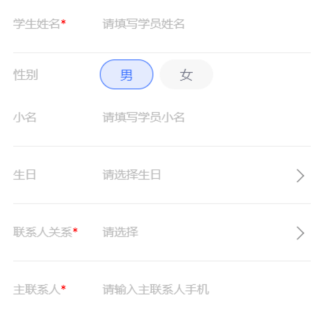 招生顶部输入孩子姓名+手机,如 小明13999999999