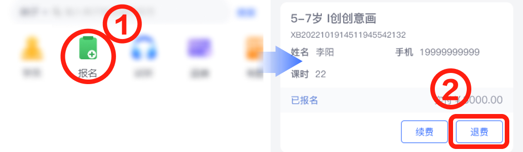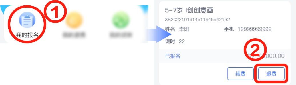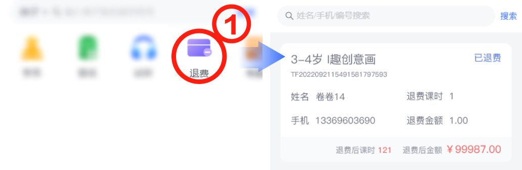 退费成功,可在报名列表 或 前台退费 查询退费记录。