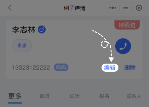 例子资料可修改,点击例子,跳转例子详情页,点击编辑修改信息,点击保存更新修改的例子信息 。