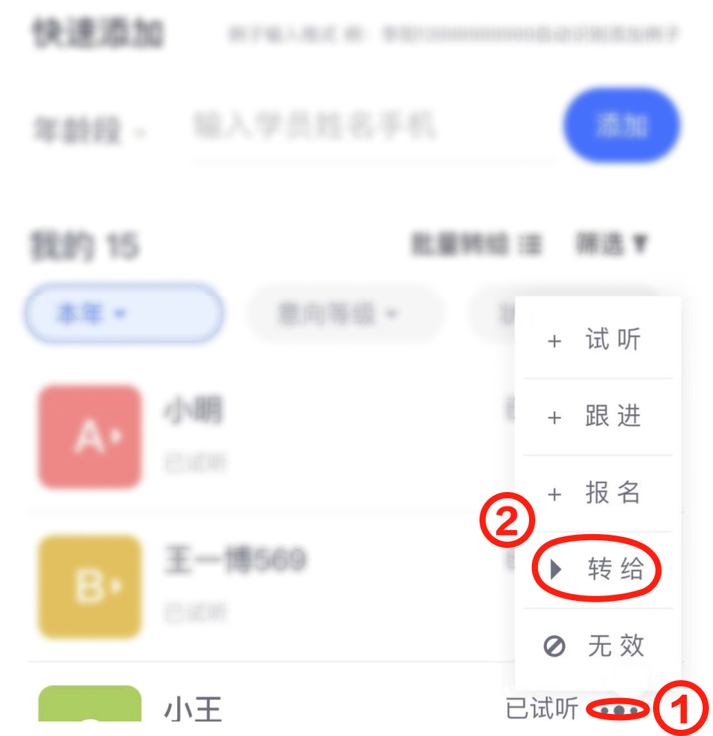 2.点击 转给