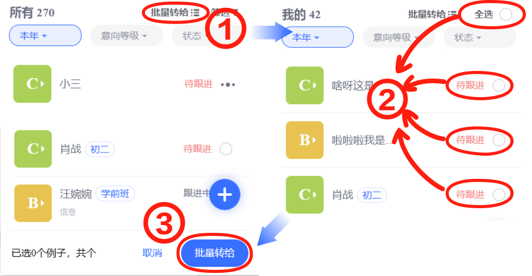 3.选择需要转给的老师