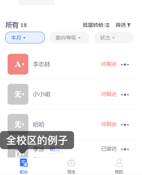 的例子,即对校区销售例子统一管理 。
